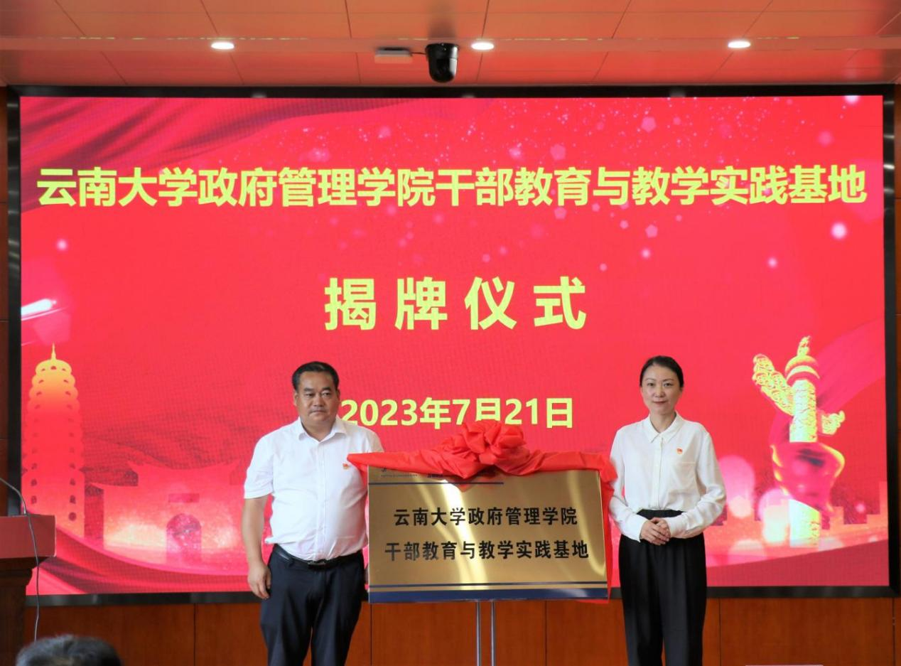 2023年暑假期间,云南大学政府管理学院干部教育与教学实践基地揭牌仪式在腾冲市委党校举行。中共腾冲市委副书记、市委党校校长王兴庭,云南大学政府管理学院教授、政治学系教工党支部书记贺琳凯出席仪式并致辞,双方共同为云南大学政府管理学院干部教育与教学实践基地揭牌。