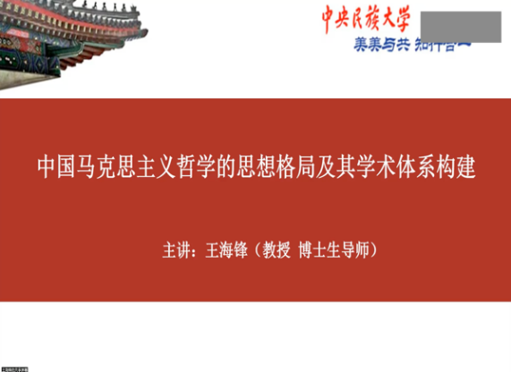 2024年10月18日晚,云南大学第六十七期“东陆哲学讲坛”顺利举行。本次讲坛邀请了中央民族大学哲学与宗教学学院王海锋教授,围绕“中国马克思主义哲学的思想格局及其学术体系构建”进行线上交流。讲座由政府管理学院哲学系张小星研究员主持,王凌云副教授担任评议人,通过线上线下,云大哲学系和省内外兄弟院校百余名师生积极参与。
