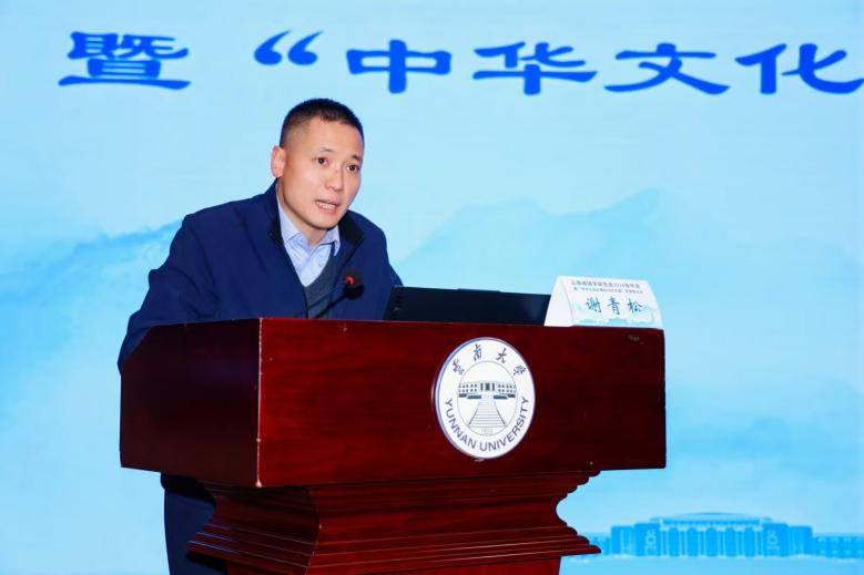 云南省国学研究会会长、云南大学文学院谢青松教授在致辞中,向与会嘉宾、青年师生及会务人员致以诚挚感谢。随后, 谢青松结合自身成长历程与育人感悟,围绕“读书之于生命”这一深刻话题,分享了三点成长启示:第一,读书足以照亮人生征途,时光从不辜负执着追梦的人,坚守热爱、深耕所爱,不仅能成就自我,更能在热爱的领域实现价值、安身立命;第二,做人不必过分纠结外在的评价与认可,应主动向内探索、沉淀自我,在认知自我、接纳自我中实现内心的丰盈与自洽;第三,人生本无既定脚本,读书恰是为生命解锁无限可能的通途,能助力我们在探索中拓宽格局、增长见识,活出独属于自己的精彩。谢青松着重强调,读书的真正价值,在于滋养精神沃土、唤醒灵魂自觉。“书中自有颜如玉,书中自有黄金屋”,埋首书卷,或许未必能即刻换来香车豪宅的物质馈赠,但这份浸润能让我们无论身处顺境逆境,都始终保持内心的笃定坦然,于喧嚣中守一份从容,于平凡中寻一份喜乐,更能为我们的成长之路注入不竭动力,支撑自身在追逐理想的道路上坚定前行、勇攀高峰。