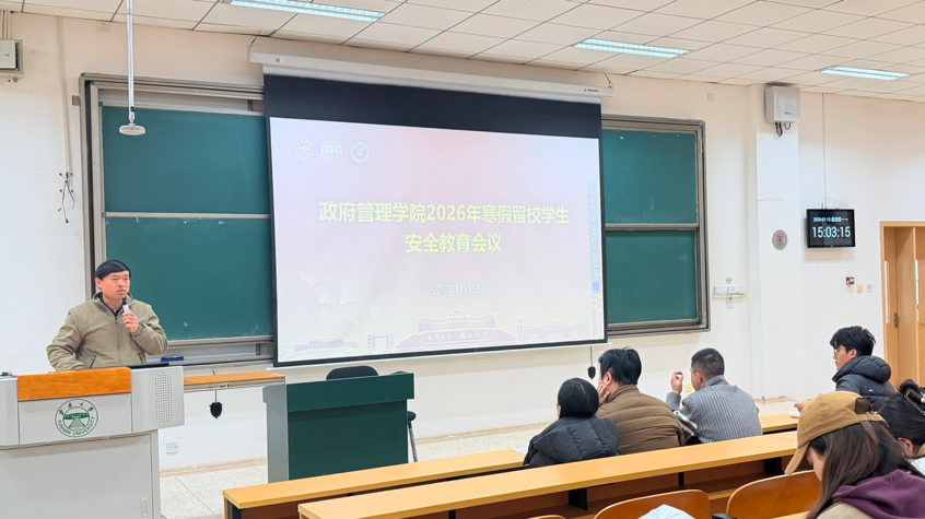 会上,学院党委副书记马凡松老师就寒假留校学生的整体管理与关怀支持作了重点阐述。马老师重点叮嘱了寒假期间各项安全注意事项,提醒同学们务必警惕诈骗信息,做到不轻信、不转账;在宿舍严禁使用违章电器,离宿及时断电;外出注意交通与人身安全,保持通讯畅通;同时注意饮食卫生与网络言行,共同维护平安健康的校园环境。围绕意识形态安全,马老师强调作为政管学子,要时刻绷紧意识形态这根弦,不在社交平台发布、传播违背主流价值观、损害国家形象、破坏校园稳定的言论和信息;阅读资料、参与学术交流时,要学会甄别错误思潮,坚守马克思主义立场,自觉抵制历史虚无主义等不良倾向,维护学术领域和校园的意识形态安全。围绕寒假学习规划,马老师也为大家指明了方向。本科生同学可着力夯实专业基础、备战考研考公或推进毕业论文;硕士生应聚焦科研进展与论文撰写,统筹好学业与求职准备;博士生则需攻坚研究难点,推动学术成果产出。学院鼓励大家充分利用这段自主时间,实现阶段性提升。